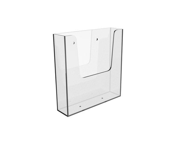 * Folderbakje voor een glasheldere presentatie aan de wand van folders, catalogi en prijskaarten. * Stevig en glashelder hoogwaardig 3mm dik kunststof. * Voorzien van boorgaten. * Capaciteit 35 mm. * In verschillende formaten verkrijgbaar. 1 stuk