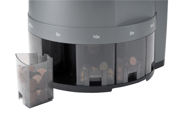 * Dankzij de hoppercapaciteit van maximaal 1.000 munten en een telsnelheid van maximaal 500 munten per minuut hebt u uw kassalade snel geteld. * Het is niet nodig om uw munten vooraf te sorteren; de 1450 voert dit op nauwkeurige wijze voor u uit. * Gemaakt van solide metaal en dit zorgt voor een soepele betrouwbare telstroom en hoge duurzaamheid. * De muntbakjes zijn voorzien van een geluiddempend materiaal, dit beperkt het geluid tot een minimum. * Telt en sorteert euromunten. * Hoppercapaciteit tot 1.000 munten. * Afneembare bovenkap voor eenvoudige reiniging. * Telt en sorteert 500 munten per minuut. * Met optel- en afpasfunctie. * Autostop bij een vol muntbakje. * Geeft de totale waarde en hoeveelheid per denominatie weer. * Duidelijk backlit LCD-scherm. * Solide metalen munttransport voor hoge duurzaamheid. * Compatibel met de Safescan Money Counting Software (MCS). * Werkt met Safescan TP-230-printer.