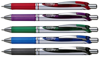 * Ideale samensmelting van gel en vloeibare inkt zorgen voor een ongeëvenaard schrijfcomfort. * Droogt snel, vlekt niet. * De schrijfpunt is in metaal gevat. * Houder heeft een rubber vingergrip en een metalen clip. * Met drukknopmechanisme. * Navulbaar met Pentel LR7 vulling. * Dit product bestaat voor 54% uit gerecycled materiaal, uitgezonderd de inkt. * Schrijfbreedte 0.35mm - kogelbreedte 0.7mm. 1 stuk
