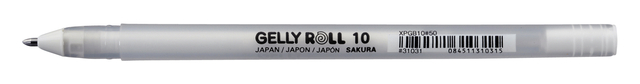 * Sakura Gelly Roll Basic 10 witte gelpen met een bold 0,5 mm lijndikte. * De witte inkt geeft vooral op donker papier een prachtig resultaat. * Geweldig om mee te tekenen, versieren en schrijven. * Te gebruiken voor handlettering, bullet journaling, (wens)kaarten en nog veel meer! * Gelly Roll In 1984 vond Sakura een nieuw soort inkt uit, gebaseerd op gel en die in veel prachtige kleuren gemaakt kon worden. * De wereld maakte voor het eerst kennis met de gelpen, genaamd Gelly Roll, die sindsdien bekend is geworden om haar prachtige schrijfresultaat waarbij je niet hoeft te drukken. * Het schrijft heerlijk en ligt soepel in de hand. * Inmiddels bestaat Gelly Roll in veel soorten kleuren en effecten zoals Stardust (glitter), Metallic (glanzend) en Moonlight (fluorescerend). * Superleuk voor het beschrijven van wenskaarten, maar ook voor tekenen en decoreren!