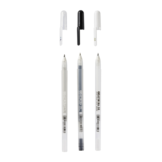 * Set met 3 gelpennen Basic zwart, Basic wit en Stardust transparant. * Geweldig om mee te tekenen, versieren en schrijven. * Te gebruiken voor handlettering, bullet journaling, (wens)kaarten en nog veel meer! * Gelly Roll In 1984 vond Sakura een nieuw soort inkt uit, gebaseerd op gel en die in veel prachtige kleuren gemaakt kon worden. * De wereld maakte voor het eerst kennis met de gelpen, genaamd Gelly Roll, die sindsdien bekend is geworden om haar prachtige schrijfresultaat waarbij je niet hoeft te drukken. * Het schrijft heerlijk en ligt soepel in de hand. * Inmiddels bestaat Gelly Roll in veel soorten kleuren en effecten zoals Stardust (glitter), Metallic (glanzend) en Moonlight (fluorescerend). * Superleuk voor het beschrijven van wenskaarten, maar ook voor tekenen en decoreren.