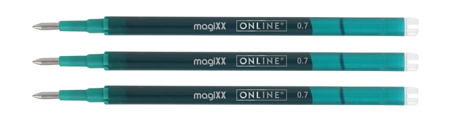 * Geef je pen nieuw leven met de MagiXX uitwisbere gepenlvullingen en geniet van een prettige schrijfervaring. * Schrijfbreedte 0.7mm. * Schrijfkleur turquoise. * Set à 3 vullingen.