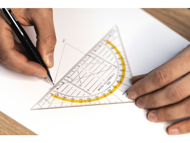 * Transparant plexiglas. * Combinatie van liniaal, gradenboog, driehoek en parallelliniaal. * Met inktnoppen. 1 stuk