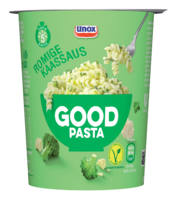 * Heb je trek na het sporten of ben je toe aan een opkikker aan het eind van de middag? * Het bereiden van Unox Good Pasta is zo gepiept. * Giet kokend water op de Good Pasta tot aan de lijn in de cup en binnen 5 minuten kun je genieten van een portie overheerlijke pasta. * Fusilli met romige kaassaus. * Deegwaar met sauspoeder.