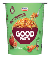 * Heb je trek na het sporten of ben je toe aan een opkikker aan het eind van de middag? * Het bereiden van Unox Good Pasta is zo gepiept. * Giet kokend water op de Good Pasta tot aan de lijn in de cup en binnen 5 minuten kun je genieten van een portie overheerlijke pasta. * Spaghetti met bolognesesaus. * Deegwaar met sauspoeder