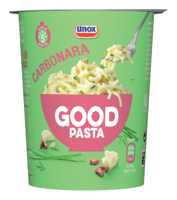 * Heb je trek na het sporten of ben je toe aan een opkikker aan het eind van de middag? * Het bereiden van Unox Good Pasta is zo gepiept. * Giet kokend water op de Good Pasta tot aan de lijn in de cup en binnen 5 minuten kun je genieten van een portie overheerlijke pasta. * Deegwaar in sauspoeder.