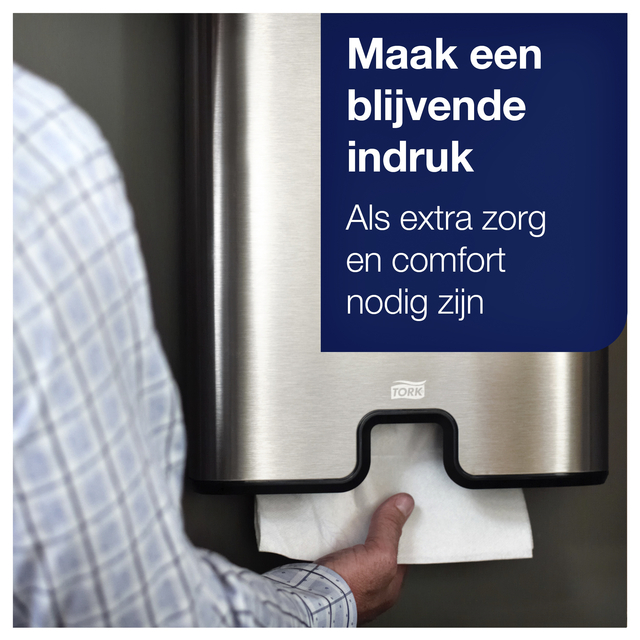 * Tork Xpress® Zachte Multifold Handdoeken Wit H2: Zorg dat gasten hun handen extra comfortabel kunnen afdrogen met deze zachte handdoeken voor eenmalig gebruik. De gevouwen handdoeken zijn gemaakt van extra absorberend QuickDry-papier, dat de handen snel droogt. Daarnaast zorgen deze Multifold-handdoeken voor minder afval en een beter hygiëne in sanitaire ruimten met lage tot gemiddelde bezoekersaantallen. Dankzij de vel-voor-vel-dosering van de Tork Xpress® dispenser raken gasten alleen aan wat ze uitnemen. Onze compacte dispensers passen ook in kleinere ruimten. * Verhoog het comfort voor gasten met deze stevige, absorberende papieren handdoeken. * Verminder het verbruik van papieren handdoeken in uw sanitaire ruimten en verbeter de hygiëne met vel-voor-vel-dosering. * Benut uw ruimte optimaal: gebruik deze handdoeken met de compacte Tork Xpress® handdoekdispenser voor sanitaire ruimten met lage tot gemiddelde bezoekersaantallen. * 21 pakken à 136 papieren handdoeken. 2-laags. Advanced-kwaliteit. Te gebruiken met H2 dispensers. * Tork Easy Handling® Plastic Zak, voor eenvoudig dragen, openen en weggooien van de verpakking. * Voorzien van EU Ecolabel en FSC. * Afmeting bij gevouwen (b x l): 212x85mm. * Afmeting bij ongevouwen (b x l): 212x340mm. 1 krimp à 21 pak à 136 stuks