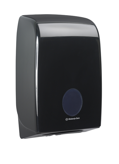 * Creëer een hygiënische en harmonieuze toiletruimte-ervaring met de Aquarius dispenserserie, ontworpen om perfect samen te werken met de bekende en vertrouwde merken Kleenex en Scott. Deze toiletruimtedispensers zijn ontworpen om te voldoen aan de hygiënevoorschriften en bieden een consistente toiletruimteoplossing die voldoet aan de hygiënebehoeften van uw werkplek. * Onze Aquarius-dispenser voor gevouwen handdoeken combineert innovatie en stijl met uitzonderlijke prestaties. Deze dispenser voor gevouwen handdoeken heeft een gestroomlijnd en afgerond ontwerp zodat vuil niet ophoopt en hij eenvoudig in één enkele beweging kan worden gereinigd. Het volledig gesloten dispensersysteem zorgt ervoor dat u alleen het product aanraakt dat u gebruikt. Dit helpt de hoge hygiënestandaarden op de werkplek te ondersteunen. * Dankzij de grote capaciteit van deze dispenser voor papieren handdoeken zijn er altijd producten beschikbaar. Het bijvullen van de dispenser voor gevouwen handdoeken is eenvoudig en het probleemloze onderhoud houdt de kosten laag op plaatsen waar het apparaat veelvuldig wordt gebruikt. Vastlopen, verspilling en kosten worden tot een minimum beperkt door de unieke, gepatenteerde overvulinrichting van deze handdoekdispenser, die ook een soepele doseerervaring biedt. * Deze dispenser voor gevouwen papieren handdoeken is geschikt voor interfold handdoeken van één vel, ook wel V-gevouwen handdoeken genoemd, waardoor overgebruik wordt verminderd. * De Aquarius-dispenser voor gevouwen handdoeken heeft een verborgen slot voor navullen en een venster om te anticiperen op het opraken van de handdoeken. Onze aanraakvrije dispensers verminderen het risico van kruisbesmetting. * De zwarte Aquarius-dispenser voor gevouwen papieren handdoeken is ook verkrijgbaar in het wit (code 6945), dus er is voor elke toiletruimte een geschikt exemplaar. Deze dispenser voor papieren handdoeken heeft een afmeting van 39,9 cm (H) x 26,5 cm (B) x 13,6 cm (D). * De Kimberly-Clark-dispenser is compatibel met een verscheidenheid aan gevouwen handdoeken van Kleenex en Scott van Kimberly-Clark, aanbevolen worden: 6710, 6659, 6663, 6669, 6677, 6682, 6778, 6789, 3749 en 4632. Het is ook compatibel met: 6633, 6647, 6649, 6664, 6689, 6764, 6771, 6772, 6773, 6777 en 7979.