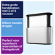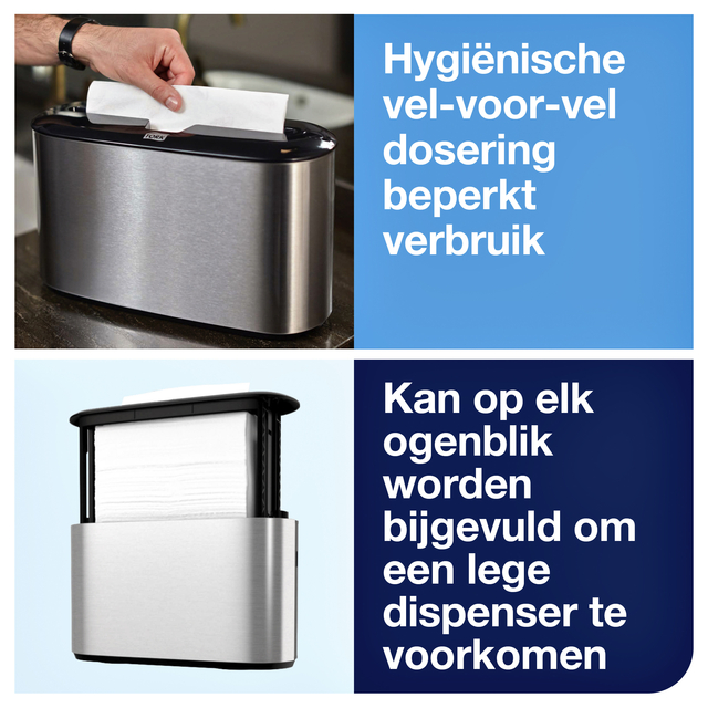 * De Tork Xpress multifold papieren handdoekdispenser voor flexibele plaatsing zonder boren is ideaal voor de luxere toiletruimtes waar naast hygiëne, stijl ook belangrijk is. * De dispenser is geschikt voor toiletten met een lage tot gemiddelde frequentie. * Tork producten uit de Image-design worden gekenmerkt door moderne en duidelijke lijnen. * De behuizing van geborsteld roestvrij staal heeft een anti-vingerdrukbescherming zodat deze er onberispelijk uitziet. *Afmeting 274 x 169 x 382mm. 1 stuk