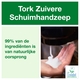 * De Tork zuivere schuimhandzeep garandeert optimale hygiëne zonder concessies te doen op duurzaamheid. * Deze speciaal ontwikkelde handzeep bestaat uit 99% natuurlijke ingrediënten. * De handzeep is dermatologisch getest en heeft een huidvriendelijke PH-waarde. * Bevorder handhygiëne en verminder het verbruik, dankzij de standaardfles en de handige pomp voor eenmalig gebruik. * Kies voor efficiënt en moeiteloos onderhoud, de dispenser van Tork kan intuïtief en binnen 10seconden worden bijgevuld.* Doordat de fles naarmate hij leger raakt vacuüm trekt verminder je het afvalvolume met ongeveer 70%. * Verpakking 6 flessen x 1000ml. * Afmeting 240 x 92 x 92mm.