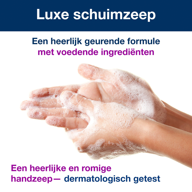 * Tork Luxe Schuimhandzeep S4: Bied bezoekers een vleugje luxe met Tork Luxe Schuimhandzeep. De geparfumeerde schuimzeep is verrijkt met natuurlijk magnolia-extract en hydraterende ingrediënten voor een rijk en romig schuim. Deze handzeep heeft een 'Easy-to-use'-certificaat van het Zweedse Reumafonds (getest volgens The Design for All Test, gepubliceerd in het Swedish Design Research Journal, 2011) en bijvullen duurt minder dan 10 seconden (gebaseerd op interne paneltest). Deze zeep helpt het waterverbruik tot 10% te verminderen (vergeleken met Tork Mild Geparfumeerde Vloeibare Zeep). De in de fabriek verzegelde fles is gemaakt van 30% gerecycled plastic (exclusief de pomp) en is vacuümtrekkend, wat de hoeveelheid afval met 70% reduceert (gebaseerd op test uitgevoerd door Essity). * 94% van de ingrediënten is van natuurlijke oorsprong (volgens ISO 16128) * Gecertificeerd met het EU Ecolabel, dermatologisch getest en met een huidvriendelijke pH-waarde. * Elegante langdurige geur met citrusachtige noten en een verfijnde mix van magnolia, orchidee en fresia. * Te gebruiken met Tork zeepdispensers, die bewezen gebruiksvriendelijk zijn en alle gebruikers een goede handhygiëne bieden.