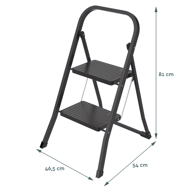 * Met de BRASQ Huishoudtrap haal je alles uit de kast. Stabiel, stevig, praktisch en lichtgewicht. * Voor elke (opruim)klus pak je deze trap erbij. * Met zijn slanke en praktische design zorgt deze trap, met 2 treden, ervoor dat je voortaan overal bij kunt en niet meer misgrijpt. * Op de bovenste trede sta je ongeveer 60 cm hoger en kun je voortaan in alle keukenkastjes, de voorraadkast of je magazijnstelling. * Deze trap van staal is inklapbaar en met slecht 5 cm breedte overal makkelijk op te bergen. * Hij heeft een draagvermogen van maar liefst maximaal 150 kilo. * Met slechts 4,1 kg is het een lichtgewicht, en dus gemakkelijk te op te pakken en te verplaatsen.* De treden hebben een brede opstap van 20 x 30 cm en hebben een anti-slip profiel. Veiligheid voorop dus. * Ook de pootjes beschikken over anti-slip beschermkappen waarmee ze wegglijden, maar ook krassen en beschadigingen aan je vloer, voorkomen. * De bovenste treden kan stevig worden vastgeklikt waardoor het veiligheidsprotocol in werking treedt, hierdoor kan de trap nooit plotseling of uit zichzelf inklappen. * De keukentrap is Warenwet Draagbaar Kllimmaterieel / EN-14183 gecertificeerd, en voldoet daarmee aan de hoge product normeringen die in Nederland worden gesteld. * Met de BRASQ Huishoudtrap haal je een stabiele basis en optimaal sta comfort in huis. * De huishoudtrap wordt geleverd in een mooie retail verpakking, in deze doos zit de huishoudtrap en daarbij ook de handleiding. * Voor gebruik van dit artikel wordt aangeraden altijd deze handleiding door te nemen voor het juiste gebruik. * Draagvermogen: Maximaal 150 kg * Afmetingen verpakking: 46 x 5 x 91 cm ( l x b x h ) * Afmetingen in gebruik: 46.5 x 54 x 81 ( l x b x h ) * Afmetingen ingeklapt: 46,5 x 5 x 90 cm ( l x b x h ) * Aantal treden: 2 * Afmetingen treden: 30 x 20 cm * Materiaal frame: Staal * Antislip profielen: Ja * Kleur: Zwart * Inklapbaar: Ja * Gewicht: 4,1 kg * Handleiding: Ja * Garantie: 2 jaar * Keuringen: Warenwet Draagbaar Kllimmaterieel / EN-14183