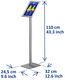 * Klassiek design informatiestandaard inclusief A4 formaat verstekhoek kliklijst met Easy-Click systeem voor een snelle, eenvoudige en representatieve presentatie. * Kliklijst van geanodiseerd aluminium met kunststof achterzijde. * De heldere transparante voorzetfolie beschermd de poster tegen vuil en vocht. * Standaard is eenvoudig te monteren. * De kliklijst kan zowel staand als liggend worden geplaatst. * Voetstuk 320x245mm van 4mm staal. * Hoogte staander 900mm. 1 stuk
