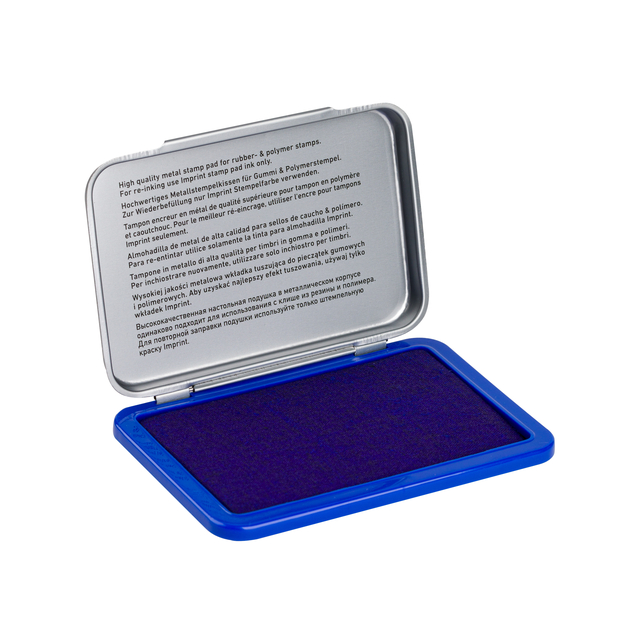 * 9071M metalen handstempelkussen met blauwe inkt, afmeting 90 x 50mm, * Watergebaseerde inkt zonder olie (voor rubber- en polymeerstempels) en is voldoende voor duizenden schone en kleurintensieve afdrukken.