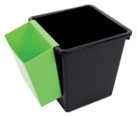* Kan zowel aan de binnenkant- als aan de buitenkant van de vierkante, tapse papierbakken van 21 en 27 liter gehangen worden. * Ideaal voor het gescheiden inzamelen van verschillende afvalsoorten. * In de kleuren blauw, grijs, groen en zwart. 1 stuk