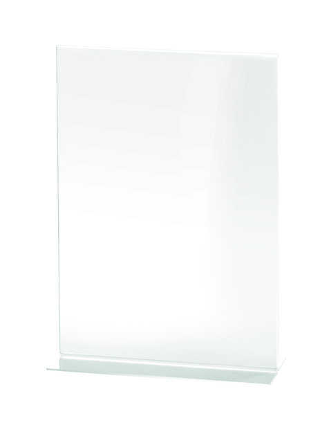 * Transparante houder voor perfecte zichtbaarheid. * Opening aan de onderkant om uw flyer te presenteren. * Dubbelzijdige display. * Stabiele onderkant. * Gemaakt van polystyreen.
