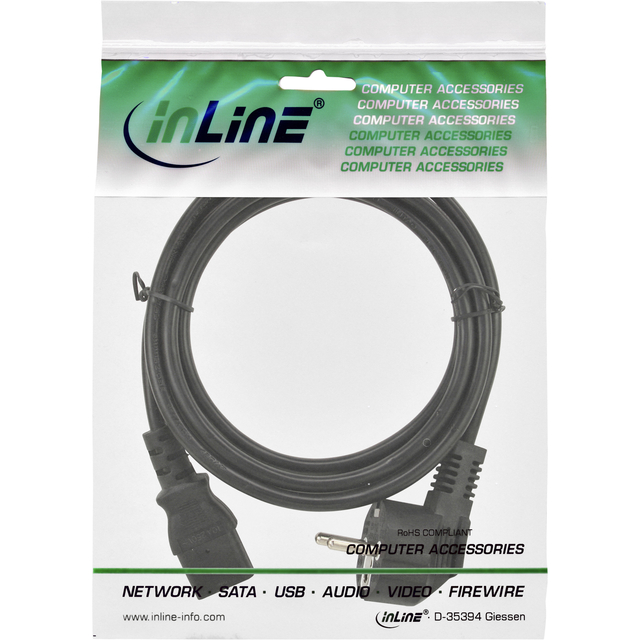 * Inline externe Stroomkabel C13 (Recht). * CEE7/7 (Haaks). * 1.8M Zwart (Type F). * Powerkabel om apparaten met IEC 60320 C14 poort aan te sluiten. * Hoogwaardige kwaliteitskabel. * Polybag. * Zowel in bulk als consumentenverpakking verkrijgbaar.