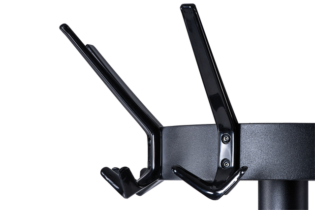 * Hoogwaardige, staande kapstok van staal voor permanente belasting. * Stevig en elegant: zuil gemaakt van staal, matzwart gepoedercoat. * Extreem stabiel: zware betonvoet met kunststof afdekking en vilten vloerbescherming. * MAUL-design: glanzende voet met mat geërodeerde plekken, krasbestend tegen paraplupunten. * Bijzonder geschikt voor plekken met veel bezoekers: openbare plaatsen, ingangen en kantoorruimtes. * Zuil Ø 5 cm. * Kunststof haken van onbreekbaar ABS: 8 mutshaken, 16 jashaken, 4 extra haken aan de zuil en aan de paraplubak. * Draaibare kroon, Ø 46 cm, voor gemakkelijke toegang aan alle kanten. * Inclusief parapluhouder, Ø 27 cm, voor maximaal 8 paraplu's en 4 zakparaplu's. * Voet Ø 36,5 cm, gewicht 6 kg. * Eenvoudige montage. * Totale hoogte: 175 cm.