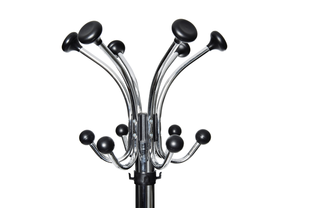 * Stevig en elegant: zuilen en haken in glanzende metallic look. * Extreem stabiel: zware betonvoet met kunststof afdekking en vilten vloerbescherming. * MAUL-design: glanzende voet met mat geërodeerde plekken, krasbestending tegen paraplupunten. * Bijzonder geschikt voor representatieve plekken, bijvoorbeeld cafés, foyers en wachtruimtes. * Veilig: afgeronde kunststof knoppen sparen de kleding. * Zuil Ø 5 cm. * 6 mutshaken en 6 jashaken van metaal, 4 extra haken van kunststof aan de zuil en aan de paraplubak. * Kunststof knoppen: mutshaken Ø 5,5 cm, jashaken Ø 3,8 cm, van onbreekbaar ABS. * Draaibare kroon, Ø 41 cm, voor gemakkelijke toegang aan alle kanten. * Inclusief parapluhouder, Ø 27 cm, voor maximaal 8 paraplu's en 4 zakparaplu's. * Voet Ø 36,5 cm, gewicht 6 kg. * Eenvoudige montage. * Totale hoogte: 176 cm.