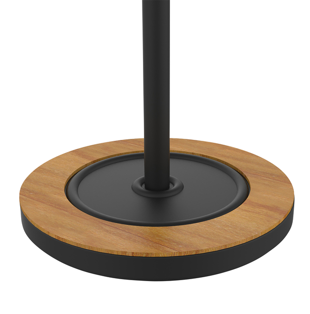 * Neo retro design. * Deze staande kapstok is trendy en modern dankzij de combinatie van materialen die zowel natuurlijk (bamboe) als industrieel (metaal) zijn. * Eco product: het gebruik van bamboe en recyclebaar hoogwaardig staal draagt zo bij aan het behoud van natuurlijke hulpbronnen en het verminderen van de milieu-impact. * Functioneel: met de 6 verspringende haken zorgt deze kapstok voor een perfecte ondersteuning van uw kleding. * Handig: uitgerust met een paraplubak die voorzien is van een lekbak. * De verzwaarde voet van 5,4 kg zorgt voor stabiliteit van de kapstok ongeacht de belasting. * Practisch: eenvoudige montage zonder gereedschap. * De kapstok is een perfecte aanvulling op de UNILUX LED-lampen en kantooraccessoires (klokken, voetensteunen, ergonomische producten). * Leverbaar in zwart met bamboe. * 3 haken van metaal en 3 haken van bamboe. * Paraplubak: capaciteit voor 6 paraplus. * Afmeting: hoogte: 178cm. * Verzwaarde voet: 5,4 kg, diameter 34 cm. * 2 jaar garantie. * Materiaal: kapstok van metaal afgewerkt met epoxyverf / bamboe.