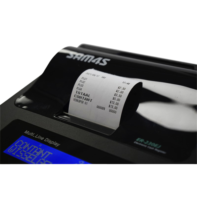 * Compacte portable kassa met krachtige mogelijkheden. Dat is de Sam4s ER-230BEJ. * De kassa beschikt over snelle 5,7cm thermische bonprinter, 12 hoofdgroepen. * Daarnaast beschikt de ER-230BEJ over een aansturing voor de optionele geldlade (12 of 24V), deze geldlade is los te bestellen. * Standaard wordt er een netsnoer meegeleverd. * Dit kassasysteem kan gekoppeld worden aan de reeds lang bestaande gecertificeerde CCV terminals. * Voor de beste oplossing voor buitencatering of kiosk is er een oplaadbare accu separaat te bestellen. Heeft u hulp nodig bij het programmeren, dan is er een programmeerpakket beschikbaar, de kosten hiervan bedragen € 75. * Wil je hier gebruik van maken, neem dan voordat je de kassa aanschaft contact op met jouw kantoorvakhandelaar. * Zij helpen je graag verder.