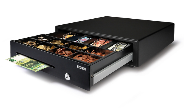 * Binnen de SD-serie is de kassalade Safescan SD-4141 gemaakt van sterke materialen. * De solide stalen behuizing en de inzetbak van barstbestendig pvc met stevige metalen klemmen garanderen een lange levensduur. * De Safescan SD-4141 is zeer geschikt voor gebruik op locaties met een gemiddeld aantal bezoekers, zoals schoolkantines, kleinere winkels, sportcentra, enz. * Afmetingen: 41 cm (B) x 41.5 cm (D) x 11.5 cm (H). * Robuuste kogellagers. * Getest om ten minste 1 miljoen keer te openen. * Stevige metalen biljetclips. * Makkelijke drukopening. * Aanpasbaar en verwijderbaar compartiment. * Geschikt voor 12V en 24V kassa's en bonprinters. * Afroomgleuf voor het bewaren van bankbiljetten met hoge waarde en waardepapieren. * Met een optionele montagebeugel (4141B) is uw kassalade veilig en uit het zicht onder uw counter te monteren. * Vraag uw kantoorvakhandel naar de mogelijkheden.