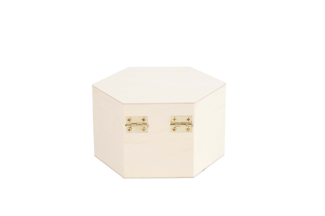 * Hexagonale doos van licht hout met magnetische sluiting. * Afmeting 12x7cm.