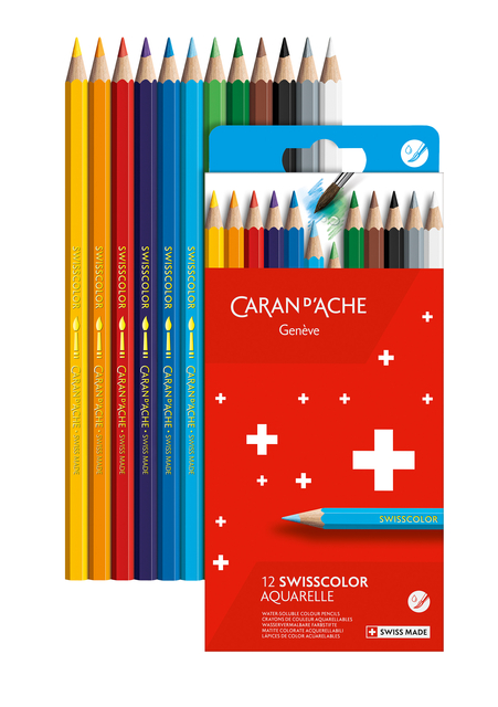 * Caran d'Ache School Line Aquarel FSC kleurpotloden in kartonnen doos. 1 doos x 12 stuk