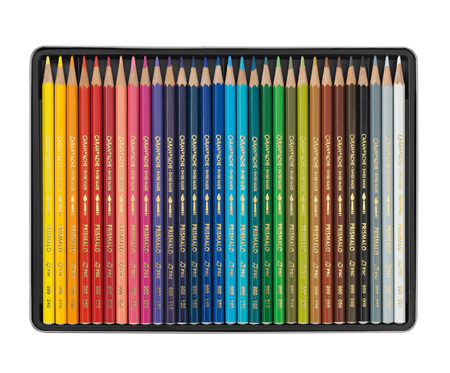 * Caran d'Ache is uitvinder van Aquarel Kleurpotlood. * Prismalo is de meest herkenbaar serie uit de gehele Caran d'Ache collectie met de Matterhorn op de cover van iedere doos. * 100% Swiss Made. * Gemaakt van Californisch FSC Cederhout * Potlood stiften zijn bij Caran d'Ache verlijmd in het potlood waardoor stift niet breekt bij het vallen van het potlood. * Superieure kwaliteit aquarel kleurpotloden, met stevige potloodstift van 2,95mm. * Excellente lichtechtheid. 1 doos x 30 stuk