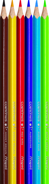 * Maped kleurpotlood Color'Peps 6 potloden felle kleuren. * Met zachte, extra stevige potloodpunt. * Makkelijk te slijpen, splintert niet. * In een kartonnen etui.