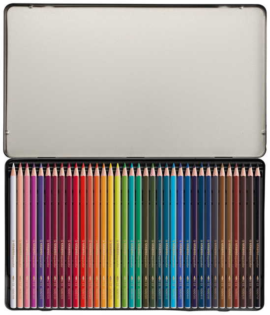 * STABILO aquacolor is niet alleen verkrijgbaar in hemelsblauw en zeegroen, maar biedt ook nog eens 34 andere kleuren. * Ze zijn verbluffend natuurlijk en je kunt er een echt aquarel-effect mee bereiken. * Dat geeft extra kleur aan het schoolleven van toekomstige jeugdige talenten. * Kleurpotloden met aquareleffect, intens, gemakkelijk te gebruiken, met witgelakt uiteinde. 1 blik à 36 stuks