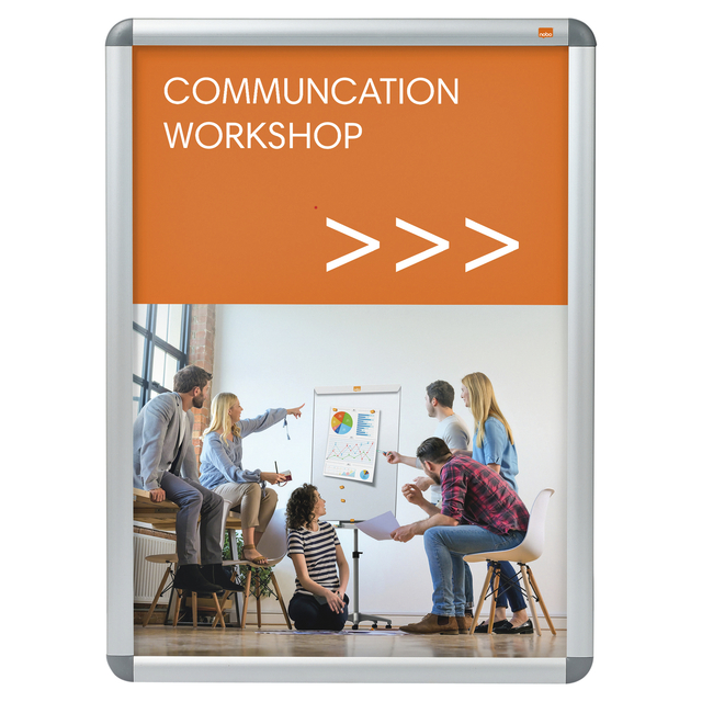 * Wandgemonteerde poster frame met clicklijst. * Weergave formaat: 500x700mm. * Voorzien van reflectiewerende, polypropyleen afdekplaat ter bescherming van de inhoud. * Handige aluminium clicklijst voor het eenvoudig wisselen van inhoud. * Gladde afgeronde hoeken voor extra veiligheid. * Veilig door hoekbevestiging. * Maak je eigen gratis te downloaden borden door een bezoek aan de Nobo Sign Maker website met meer dan 100 sjablonen. * Inclusief bevestigingsmateriaal. 1 stuk