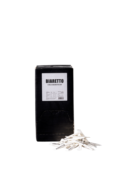 * Biaretto koffiecreamer. * Doos á 600 sticks. * Dispenserdoos. * 2,5 gram. * Ingrediënten voor koffie en thee.