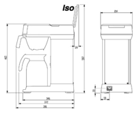 * De Iso zet op een snelle en eenvoudige manier heerlijke verse filterkoffie direct in een hoogwaardige rvs thermoskan van 2 liter inhoud. * Dankzij deze dubbelwandige rvs thermoskan houdt u de kwaliteit van de koffie lang optimaal. * Deze machine van rvs met hoogwaardig kunststof wordt geleverd met kunststof filterpan en 1 dubbelwandige rvs thermoskan van 2,0 liter inhoud. * Hoeft niet aangesloten te worden op de waterleiding. * Geen warmhoudplaten. * Buffervoorraad 1 kan (16 koppen). * Zettijd: ca. 6 minuten per thermoskan. * Uurcapaciteit ca. 18 liter (144 koppen). * Aansluitwaarde 230V~ 50/60Hz: 2000W. * Afmeting 214x391x465mm. * De Iso geeft geen geluidsignaal als de koffie klaar is en er is geen actieve kalk signalering (geluid of lampje). * De minimale hoeveelheid is ongeveer 2 kopjes (circa 200 ml). * Uiteraard kan de Iso thuis gebruikt worden, maar gezien zijn grootte en de zetcapaciteit wordt de Iso hoofdzakelijk out of home gebruikt. 1 stuk