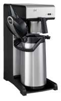 * Snelfilterapparatuur voor het direct zetten van koffie in thermoskan of airpot. * Voor locaties zonder wateraansluiting. * Inclusief roestvrijstalen filterpan. * Exclusief thermoskan of airpot. * Heerlijke, verse filterkoffie. * De koffie blijft gegarandeerd minimaal 3 uur perfect op temperetuur. * Hoogwaardig roestvrij staal in combinatie met zwarte accenten zorgt voor een eigentijdse uitstraling. * Signalen geven aan wanneer de koffie klaar is en wanneer het apparaat ontkalkt moet worden. 2,2 liter * Uurcapaciteit 19 liter. * Zettijd 7 minuten. * Aansluitwaarde 230V~ 50/60Hz 2310W. * Afmeting bxdxh 235x406x545mm. 1 stuk