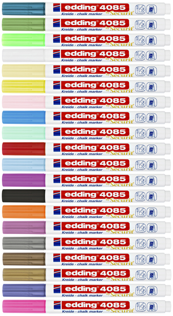 * Krijtmarker met ronde punt. * Met een vochtige doek te verwijderen van bijna alle gladde oppervlaktes. * Ideaal voor gebruik op krijtborden, glas en ramen. * Schrijfbreedte 1-2mm.