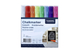 * Krijtstift met vloeibare inkt, punt 3mm. * Set van 8 stiften in verschillende kleuren (rood, paars, blauw, oranje, roze, geel, groen, wit). * Gebruikt pigmenten op waterbasis waardoor het niet giftig, geurvrij en veilig voor kinderen is. * Geschikt voor elk glad niet-poreus oppervlak (glas, keramiek, kunststof, krijtbord, raam, enz.). * Het pompsysteem maakt een nauwkeurige dosering van de inkt mogelijk. * 2 omkeerbare punten beschikbaar: rond en beitel. * Gemakkelijk van niet-poreuze oppervaktes te verwijderen met een droge of vochtige doek.