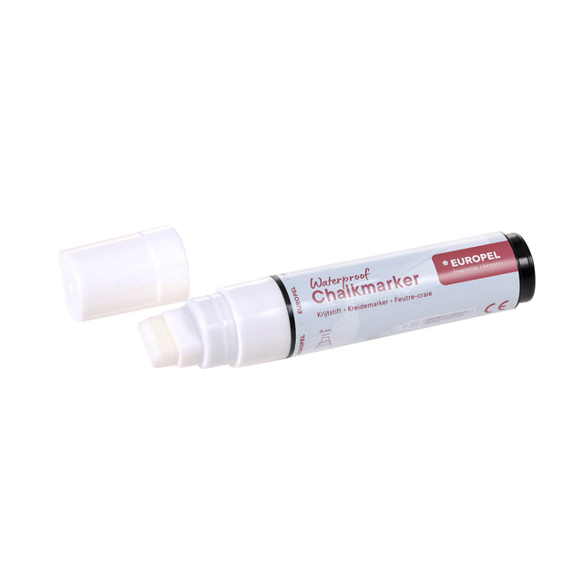 * De watervaste krijtstift in de kleur wit is een essentieel hulpmiddel voor al uw creatieve projecten. * Met een brede 15mm punt kunt u zowel dikke als fijne lijnen trekken, perfect voor opvallende borden, raamdecoraties en kunstwerken. * De watervaste inkt blijft stevig op zijn plaats, zelfs bij blootstelling aan water, waardoor uw ontwerpen helder en duurzaam blijven. * Deze stift is gemaakt van niet-giftige materialen, droogt snel en is geurloos, wat zorgt voor veilig en gebruiksvriendelijk werken. * Geschikt voor diverse oppervlakken zoals glas, metaal, plastic en krijtborden, en eenvoudig te verwijderen met onze speciale reiniger spray. * Ideaal voor zowel professioneel als thuisgebruik.