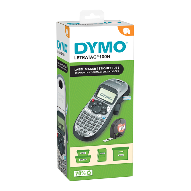 * Draagbare labelmaker ideaal voor thuis of op kantoor. * Deze labelmaker biedt 2-regelig afdrukken, 5 lettergroottes, 7 afdrukstijlen, 8 soorten kaders, geheugen voor 9 labels, een datumstempel en 3 taalopties. * Dankzij het lcd-scherm voor 13 tekens en de grafische weergave op deze labelprinter kunt u niet alleen berichten zien, maar ook het lettertype en de effecten voordat u afdrukt. * Drukt af op LetraTag LT-labels, die verkrijgbaar zijn in veel verschillende kleuren en in plastic, metalen en opstrijkbare labelvarianten. * Voor thermisch afdrukken hebt u geen inkt of toner nodig. * Schakelt automatisch uit voor het besparen van stroom. * Gebruiksvriendelijke, snel toegankelijke knoppen voor snel en eenvoudig etiketten maken. * Werkt op 4 AA-batterijen (inbegrepen). 1 stuk