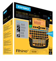 * De Rhino 4200 voert uw labeltaken snel en correct uit. * Navigeer eenvoudig op het vertrouwde Qwerty-toetsenbord. * Gebruik de met één toets bediende sneltoetsen om snel snoer-/kabelwikkels, vlaglabels, labels met vaste lengte, enz. te creëren en op te maken. * Sneltoetsen voor tekstgrootte, vetgedrukt, cursief, onderstrepen, kader en verticale tekst. * 7 lettergroottes, 8 tekststijlen en 4 kaderstijlen. * Met 228 symbolen en clipartafbeeldingen. * Automatisch uitschakelen om batterijen te besparen. * Drukt 4 regels tekst af op Rhino labels van 6, 9, 12 en 19mm breed. * Werkt op 6xAA alkaline batterijen of AC adapter (niet meegeleverd). * Afmetingen 176x116x60mm. 1 stuk