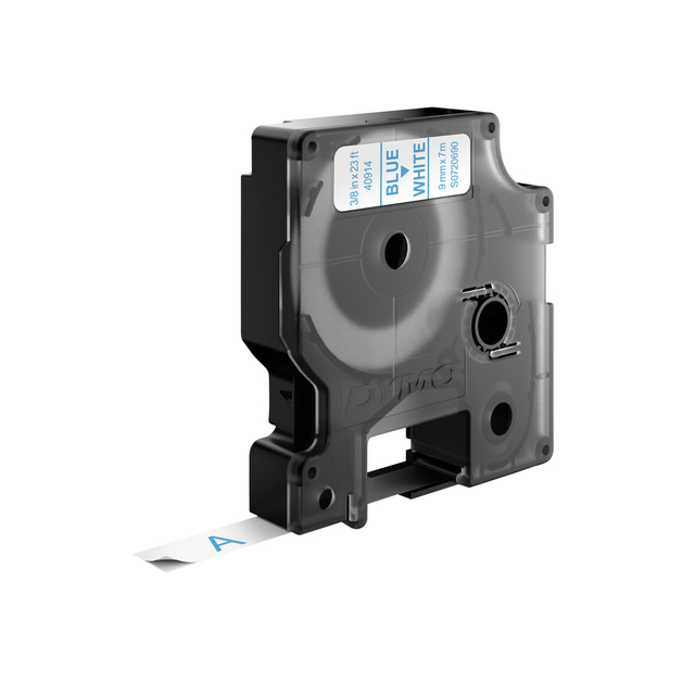 * Deze standaard Dymo D1 tapes zijn geschikt voor gebruik op gladde en vlakke ondergrond. * Indien u de tapes op een gebogen oppervlak wilt gebruiken, zoals stroomkabels, dan moet u de D1 flexibele nylon tape gebruiken. * Voor ruwe oppervlakken is de D1 permanent polyesther tape het meest geschikt. * De standaard Dymo D1 tape is geschikt voor vrijwel alle Dymo LabelManagers en Dymo LabelPoint tape printers. * Dymo D1 tapes zijn niet geschikt voor tape printers van andere merken en ook niet geschikt voor LetraTag en Rhinoprinters. * Met een 9mm brede tape kunt u hele fijne belettering aanbrengen. * Hou rekening met de marges die langs de randen van de tape nodig zijn voor de printer, de tekstgrootte zal maximaal 6mm zijn. * De bandlengte 7m. * Deze tape is wit met een blauwe opdruk. 1 stuk