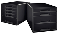 *Producteigenschappen; * Past bij andere producten uit het assortiment Black or White, voor een perfect ingericht kantoor of thuiskantoor. * 2 grote laden voor algemene voorwerpen zoals kabels, tijdschriften of zelfs keukenbenodigdheden en 2 kleine laden voor documenten of kantoorbenodigdheden. * Laden met geavanceerd glijsysteem en aanslagen die voorkomen dat de lade eruit valt. * Uniek sluitsysteem: eenmaal drukken en de lade blijft gesloten. * Geleverd met een transparante opbergtray voor het veilig opbergen van kleine bureau-artikelen zoals pennen, paperclips, etc. * Discreet gesloten laden met modern design en ergonomische uitsparing om de lade makkelijk te openen. * Slipvaste rubberen beschermvoeten, stapelbaar tot 3 hoog voor ruimtebesparing. * Ergonomische opening in kleine laden om makkelijk documenten te kunnen vinden. 1 stuk
