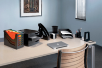 * Milieuvriendelijke bureau-accessoires gemaakt van 100% gerecycled polystyreen (100% eindgebruikerafval). * Een milieuvriendelijke oplossing in stijlvol matzwart design. * Re-Solution bureau-accessoires zijn daardoor een zeer milieuvriendelijke keuze. * Met Blauwe Engel keurmerk. * Afmetingen: buitenafmeting (HxBxD): 216 x 300 x 375 mm. * Binnenafmeting lade (HxBxD): 44 x 264 x 354 mm. 1 stuk