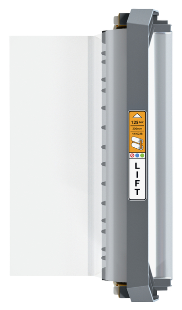 * Deze unieke en hervulbare filmcartrdige van 125 micron is geschikt voor de GBC Foton 30 automatische lamineermachine. * Hervulbaar, gemakkelijk te laden 125 micron glanzende lamineercartrige. * Lamineert maximaal 150 A4 vellen. * Ook geschikt voor documenten op A3-formaat. * Lagere bedrijfskosten voor de Foton 30 in vergelijking met een standaard filmcartridge. * Gemakkelijk te verwijderen 125 micron cartridge en opnieuw te laden in het Foton 30 toestel; voor een efficiënte en moeiteloze vervanging van lamineerrollen. * Lamineer eenvoudig: grote posters, borden, foto's, vreemde vormen en meer. * Foton 30 sensoren detecteren automatisch de filmdikte en passen de instellingen aan wanneer de cartridge wordt geladen. * Bescherm en bewaar jouw documenten met een hoogglanzende afwerking om kleuren helder te houden. * De dikte van 125 micron beschermt jouw documenten terwijl ze toch flexibel blijven. * Vervangende 125 micron lamineerrol; item 441028.