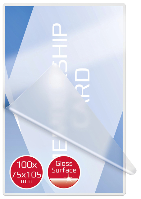 Een reeks formaten en diktes die speciaal bedoeld zijn voor zeer uiteenlopende doeleinden, zoals bezoekerspassen, vergunningspassen en promotiemateriaal. * Producteigenschappen; * 75x105 mm. * 2x125micron glanzend. * Aantal stuks per verpakking: 100. * Vier populaire niet-standaardformaten. * Geschikt voor nuttige formaten die buiten het gebruikelijke DIN-systeem vallen: ideaal voor zakken, portemonnees en traditionele kaartformaten. * Hoogglansafwerking met superieur polyethyleengehalte (kleefstof). * Superieure kleurversterking en robuustheid voor een lange levensduur. * Geschikt voor foto's. * Polyethyleen (kleefstof) is ideaal voor foto's of afbeeldingen met een hoge kleurdichtheid. * Eenvoudig aan te brengen 'ID-sleuven'. * Ideaal voor het aanbrengen van clips en kettingen, voor zeer uiteenlopende vormen van identificatie of beveiliging. * Hecht uitstekend aan fullcolor-drukwerk. 1 pak x 100 stuk
