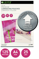 Ultra Premium hoezen voor warmlamineren. Leitz iLAM lamineerhoezen voldoen aan de hoogste vereisten voor bescherming van belangrijke documenten en presentaties. Lamineren is zeer eenvoudig met Unique Direction Technology - plaats het document in de hoes en voer het in de lamineermachine in - pijltjes op de hoes tonen de juiste invoerrichting en verdwijnen na het lamineren. * Producteigenschappen; * Eenvoudig te volgen instructies voor lamineren zonder vastlopen. * Glanzende afwerking voor levendige kleuren. * Langdurige bescherming voor uw documenten tegen vuil, vloeistoffen en vocht, sterk. * Perfect voor alle lamineermachines. * 216x303 mm (voor A4)