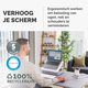 * 2 in 1 - opberg/draagtas & laptop riser. * Draagbaar, gemakkelijk op te zetten, aan te passen & op te bergen - ideaal voor hybride werken.* 5 hoogte-instellingen voor ergonomisch kijkcomfort voor het laptopscherm. * Ingebouwd handvat & optionele draagriem. * Modern en eenvoudig design, verkrijgbaar in zwart en wit. * Gemaakt van materialen die 100% recyclebaar zijn en gemaakt om lang mee te gaan met een uitgebreide beperkte garantie van 5 jaar. 1