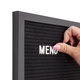 Vintage en stijlvol met ons zwart Letterbord met een zwarte houten frame. Voeg jouw menu, begroeting of een citaat toe. De letters zijn eenvoudig te monteren en aan te passen voor een eenvoudige en snelle verandering van inhoud. 330 witte kunststof letters en 120 cijfers zijn inbegrepen bij het zwarte Letterbord. Het zwarte Letterbord is perfect te gebruiken in lunchrooms, restaurants, winkels en op kantoren.