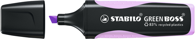 * De STABILO GREEN BOSS Pastel is een tekstmarkeerstift gemaakt van 83 % gerecycled kunststof voor scholieren, studenten, leerkrachten en kantoormedewerkers met aandacht voor het milieu. * De tekstmarkeerstift is er nu ook in 4 pastelkleuren! * De GREEN BOSS kenmerkt zich door de unieke STABILO Anti-Dry-Out Technology en kan daardoor tot wel 4 uur zonder dop zonder uit te drogen. * Ideaal bij langdurig markeren van teksten en geconcentreerd doorwerken. * De GREEN BOSS markeert en ondertreept met 2 schrijfbreedtes: 2 en 5 mm. * Dankzij de antislip gripzone ligt de stift stevig in de hand.