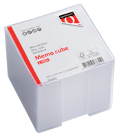* Kunststof houder. * Inclusief ± 900 memoblaadjes. * 70gr papier. * Formaat 10x10x9cm. * Gemaakt van FSC-gecertificeerde grondstoffen. * Binnenmaten: LXBXH 96x96x88mm. * Buitenmaten: LXBXH 104x103x94. 1 stuk